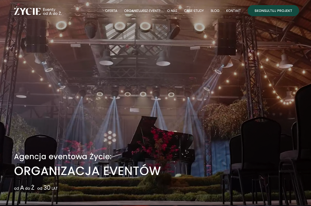 Dla Agencji 呕ycie, czo艂owej krakowskiej agencji eventowej z 30-letnim do艣wiadczeniem, stworzyli艣my now膮 witryn臋 internetow膮, kt贸ra 艂膮czy funkcj臋 portfolio z narz臋dziem do pozyskiwania klient贸w biznesowych. Projekt wymaga艂 nie tylko estetycznego wdro偶enia, ale przede wszystkim strategicznego podej艣cia do SEO, aby firma skutecznie konkurowa艂a na rynku organizacji wydarze艅.