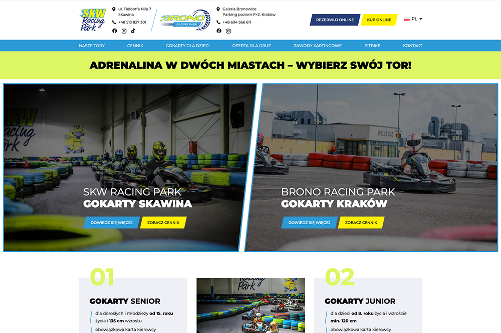 Dla SKW Racing Park, nowoczesnego toru kartingowego zlokalizowanego w Skawinie i w Krakowie, stworzyliśmy dynamiczną stronę internetową zintegrowaną ze sklepem online opartym o WooCommerce. Naszym celem było oddanie ducha sportów motorowych i dostarczenie narzędzi, które ułatwią rezerwację jazd oraz zakup produktów.
