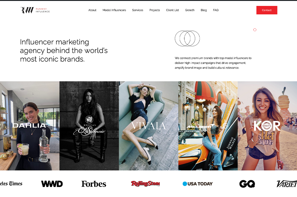 Runway Influence - strona internetowa dla agencji influencer marketingu