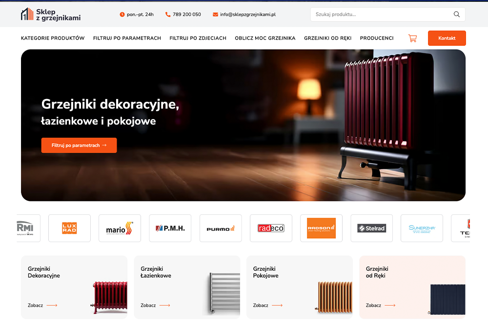 Dla marki sklepzgrzejnikami.pl stworzyli艣my zaawansowany sklep internetowy, kt贸ry 艂膮czy ogromn膮 skal臋 asortymentu z intuicyjn膮 艣cie偶k膮 zakupow膮. Wykorzystuj膮c platform臋 WooCommerce, udowodnili艣my, 偶e nawet przy bardzo rozbudowanej bazie produkt贸w system mo偶e dzia艂a膰 b艂yskawicznie i stabilnie.
